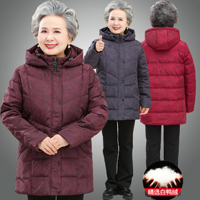 中老年人冬装女奶奶装羽绒服中长款妈妈装加厚棉衣老太...