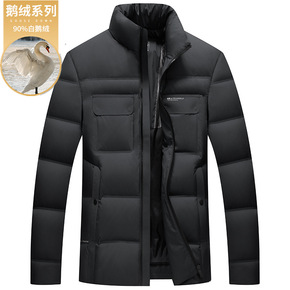 冬季新款男士羽绒服2021加厚纯色灰鸭绒长袖立领时...