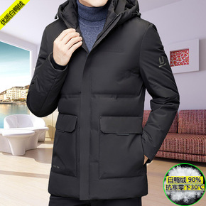 2021男士冬季羽绒服帽子可拆男中长款羽绒衣服男装...