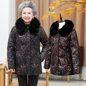 代发新款花色奶奶装羽绒服女士短款加厚中老年人冬装老...