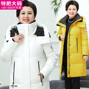 200斤胖妈妈宽松洋气鹅绒服女2021年新款长款连...