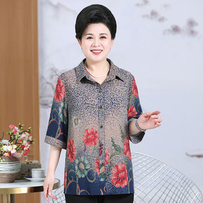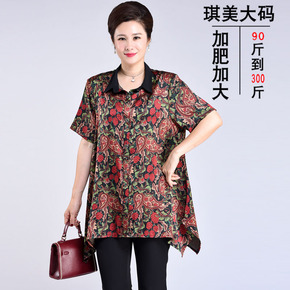加肥加大码高端中老年200斤胖妈妈装中袖衬衫夏季新...