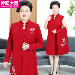 中老年秋装2020新款胖妈妈装连衣裙喜庆加肥加大码...
