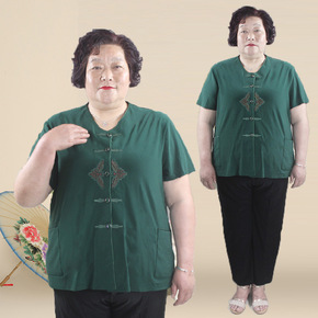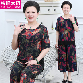 加肥加大码中老年套装200斤胖妈妈奶奶棉绸夏季宽松...