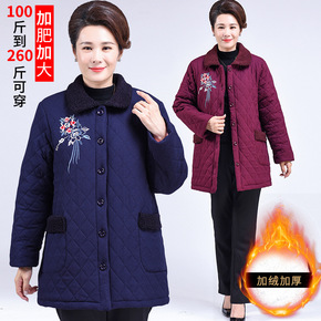 奶奶装冬装外套中老年胖妈妈加肥加大码棉服加厚中长款...