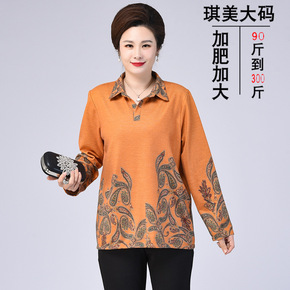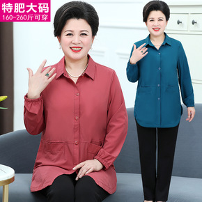200斤胖妈妈装春秋装衬衫 加肥加大中老年人翻领大...