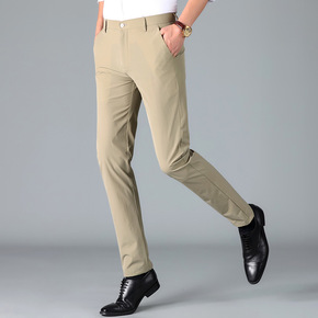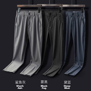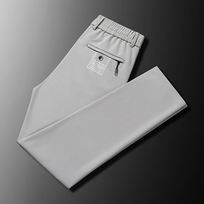 夏季新款冰丝薄款裤子男弹力松紧腰休闲长裤男士直筒商...