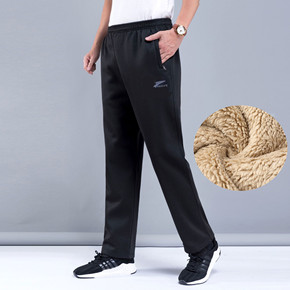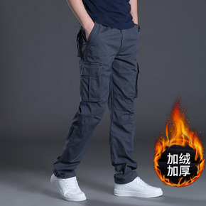 秋冬季男士宽松直筒纯色工装裤加肥加大码休闲加绒加厚...