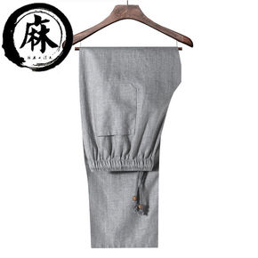 棉麻男裤男士裤子百搭夏季冰丝亚麻直筒运动休闲长裤宽...
