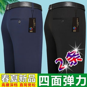 夏装男裤天丝休闲裤冰丝裤男士高腰铜氨丝长裤加肥特宽...