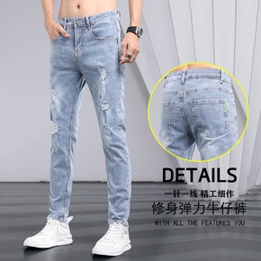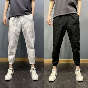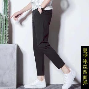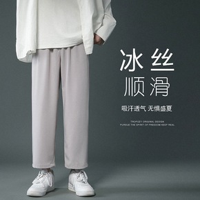 冰丝长裤男夏季百搭潮流青少年直筒九分裤男士休闲裤薄...