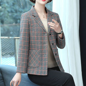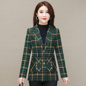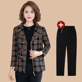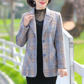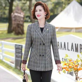 格子西装外套女秋装2021新款春秋装中年妈妈洋气大...