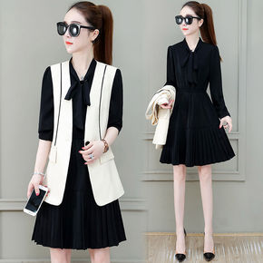 春季套装西装马甲搭配百褶裙连衣裙2022新款时尚减...