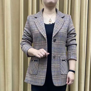 秋冬季格子休闲西装女春秋款矮个子外穿二八月中老年减...