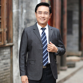 爸爸西服套装中老年婚礼礼服中年休闲商务正装羊毛两粒...