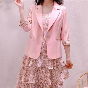 小西装套装女2021夏季新款气质显瘦遮肉减龄碎花吊...