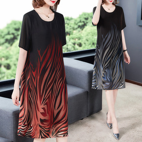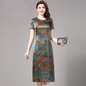 新品中老年妈妈夏装洋气香云纱连衣裙女贵夫人清爽冰丝...