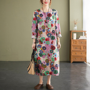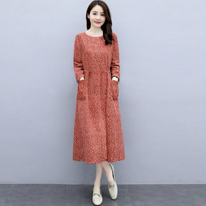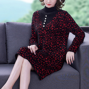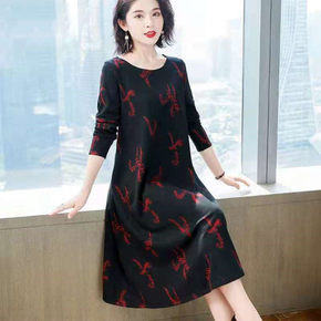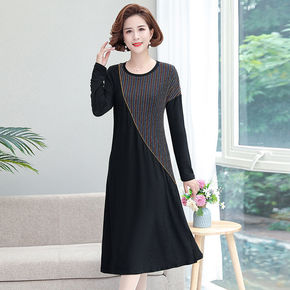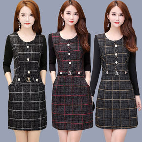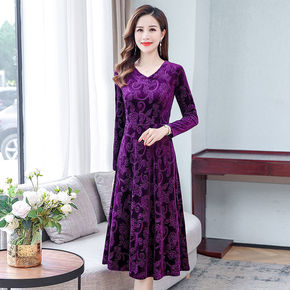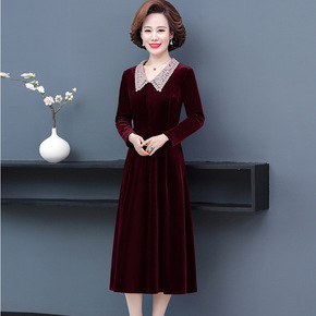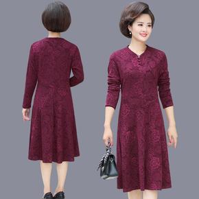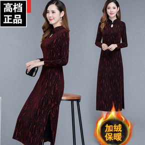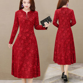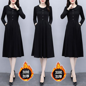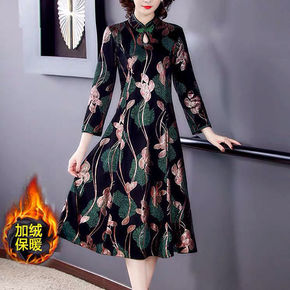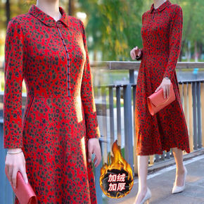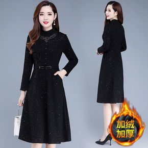 加绒不加绒连衣裙中年女长袖秋冬季新款妈妈装大码中长...