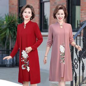 妈妈连衣裙春秋装减龄显瘦阔太太大码中老年女装假两件...