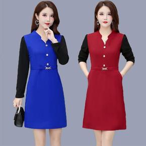 2021新款秋季妈妈装长袖连衣裙中年女洋气显瘦大码...