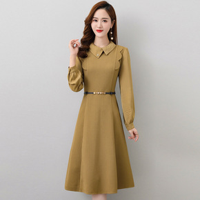 2020年新款春秋过膝连衣裙子中老年长款女装大码妈...
