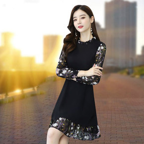 实拍 早春蕾丝长袖连衣裙新款女春春季中年妈妈打底裙...