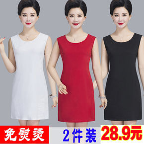 春夏新款吊带背心裙女中年妈妈装无袖连衣裙弹力冰丝中...
