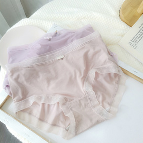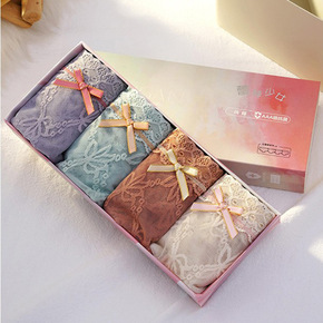 新款蕾丝少女3.0盒装内裤女中腰透气纯棉抑菌镂空性...