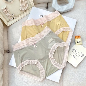 冰丝港风INS网红直播中腰少女内裤字母印花木耳边女...