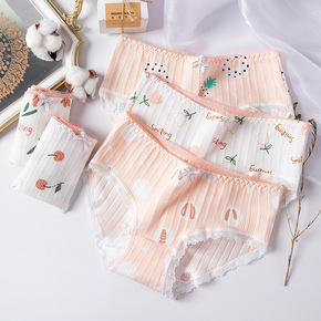 厂家直销 内裤女纯棉女士打花少女简约性感日系中腰学...