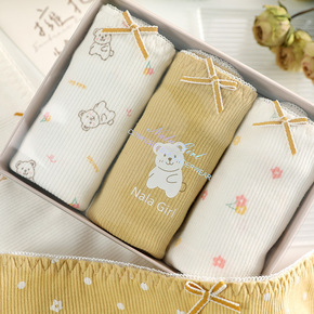 黄色小熊甜美日系内裤女透气舒适纯棉底裆可爱学生中腰...