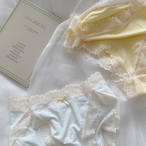 日系糖果色系闪亮光丝可爱三角裤中低腰蝴蝶结木耳边性...