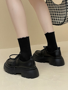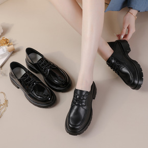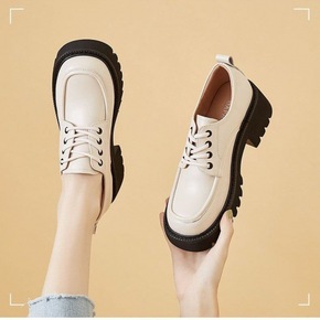 真皮2022新款春季英伦风系带厚底乐福鞋复古小皮鞋...