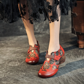 2022春秋现货民族复古圆头低帮浅口粘胶鞋日常高跟...