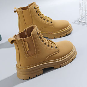 马丁靴女2022秋季新款英伦风厚底防滑大黄靴复古短...