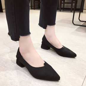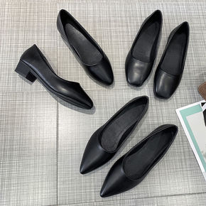 专注工作鞋30年真皮粗跟黑色久站不累酒店圆头妈妈上...