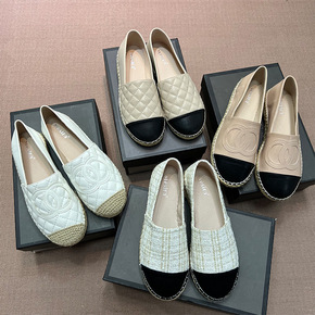 外贸原单新款圆头小香风厚底渔夫鞋一脚蹬拼色草编平底...
