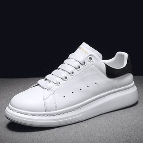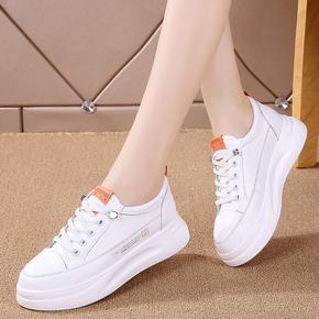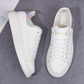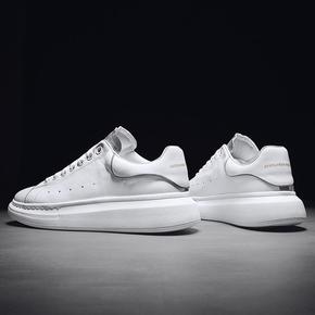小白鞋男反光头层牛皮百搭厚底运动休闲增高白侣板鞋女...