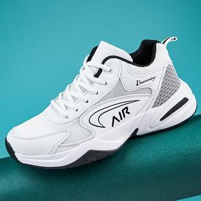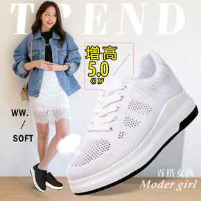 真皮厚底增高老爹鞋女2022春款百搭网布透气网鞋休...