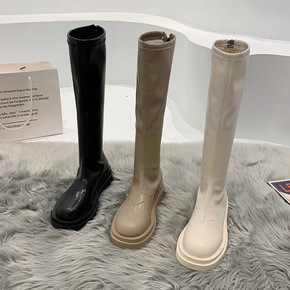不过膝长靴女2021年春秋季新款薄款韩版厚底粗跟白...