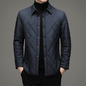 新款中老年男士桑蚕丝棉衣冬季棉袄薄款立领棉服爸爸秋...