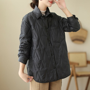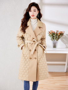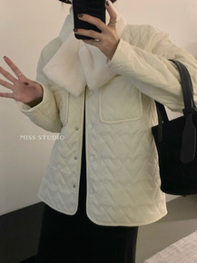现货桀艾诺丝俊2022年冬季新款复古菱格轻薄中长款...