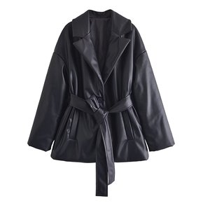 跨境亚马逊外贸女装欧美风翻领长袖仿皮棉服大衣外套 ...