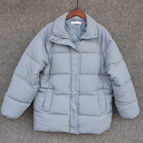 现货长袖口袋加厚纯色都市休闲棉服拉链冬季新款韩版显...