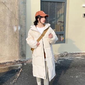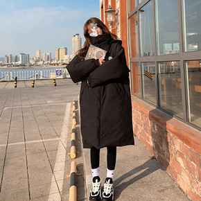 包邮棉服女2022新款韩版亮面免洗中长款连帽宽松显...