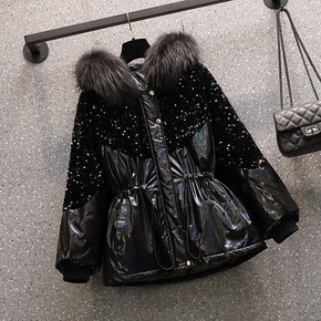 填充物:羽绒棉 面料名称:金属丝布 主面料成分:其它 衣长:普通款(50cm<衣长≤65cm...