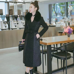 高端设计感pu皮拼接风衣羽绒棉衣女2022秋冬装气...