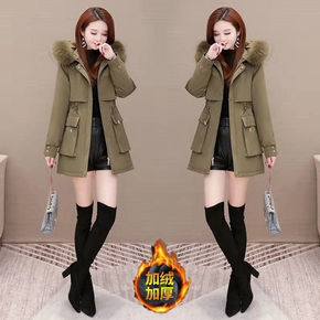 加绒加厚服女年冬装新款修身洋气中长款棉衣棉袄外套...