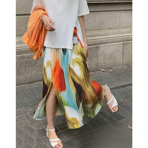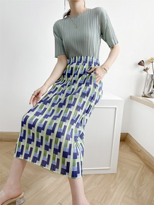 2022夏季新款三宅褶皱半身裙女中长款都市休闲修身...