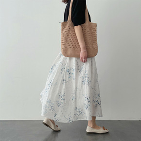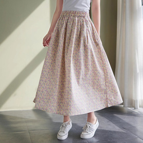 夏季半身裙新款复古棉碎花中长款大摆长裙松紧腰显瘦女...